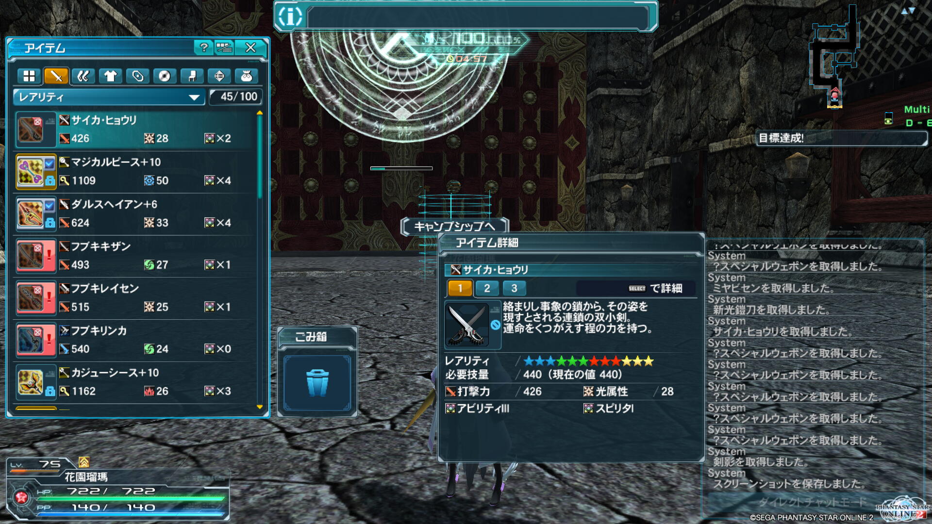 アイテムはPSO2 のメセタみたいに自動取得なのでこのままウロウロしたら拾える。