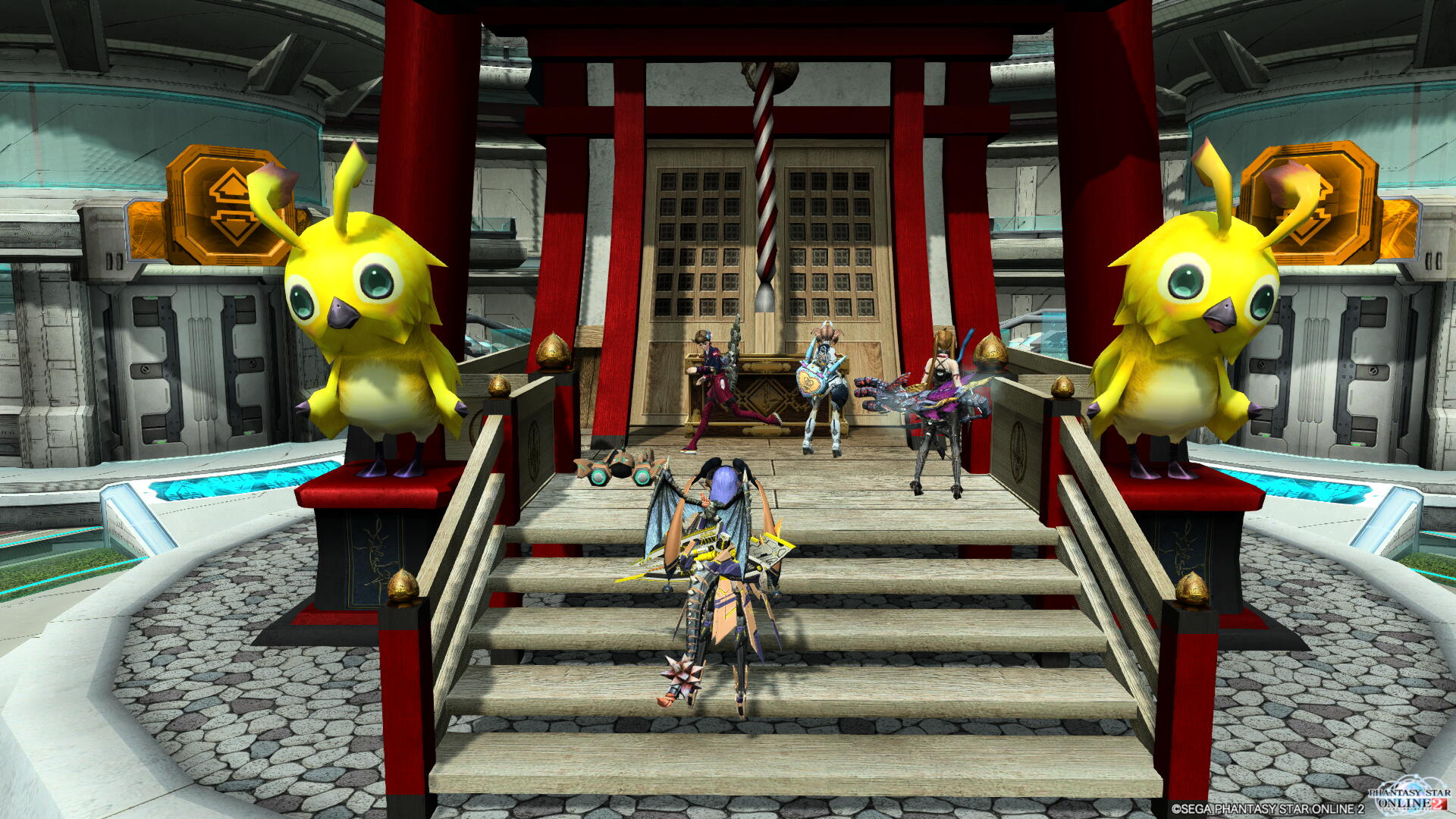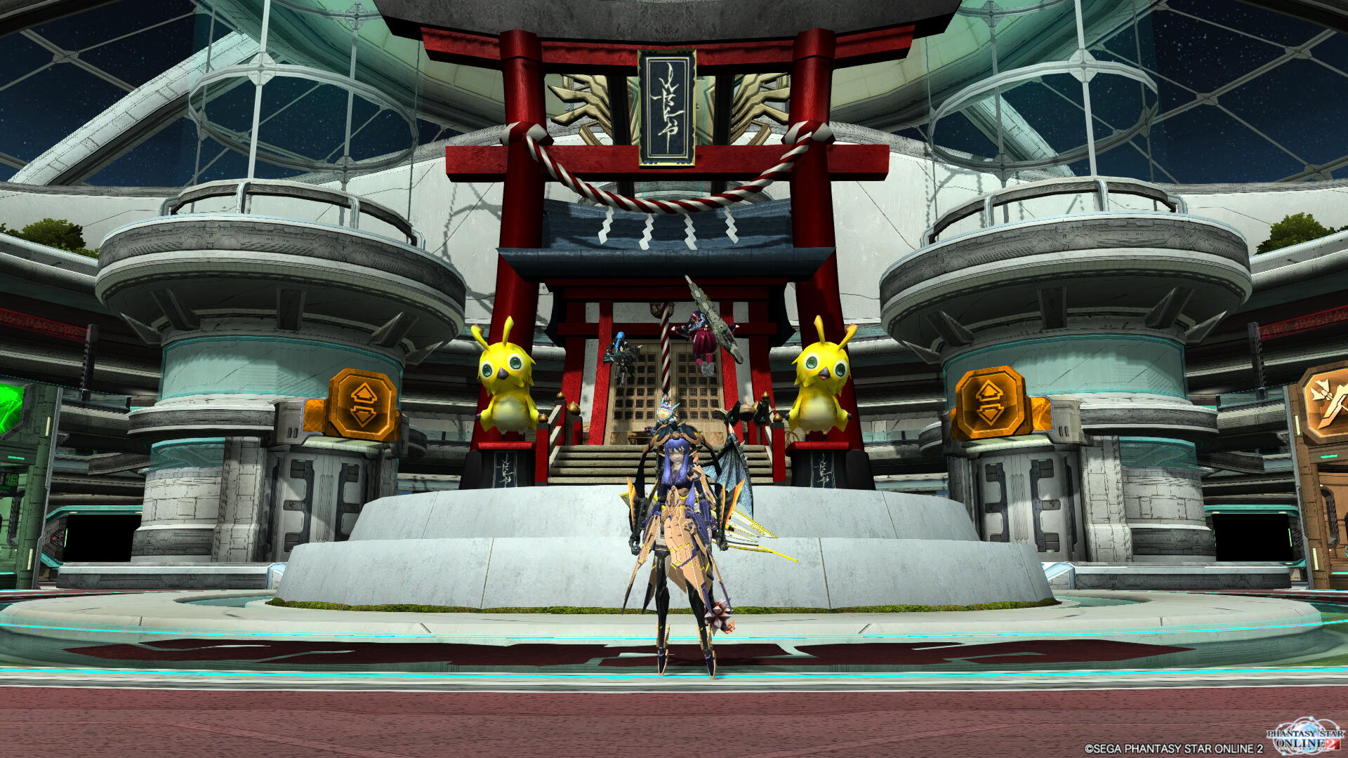 正月ロビーはメンテ挟まずリアルタイムで通常モニュメントが神社風に切り替わりました。