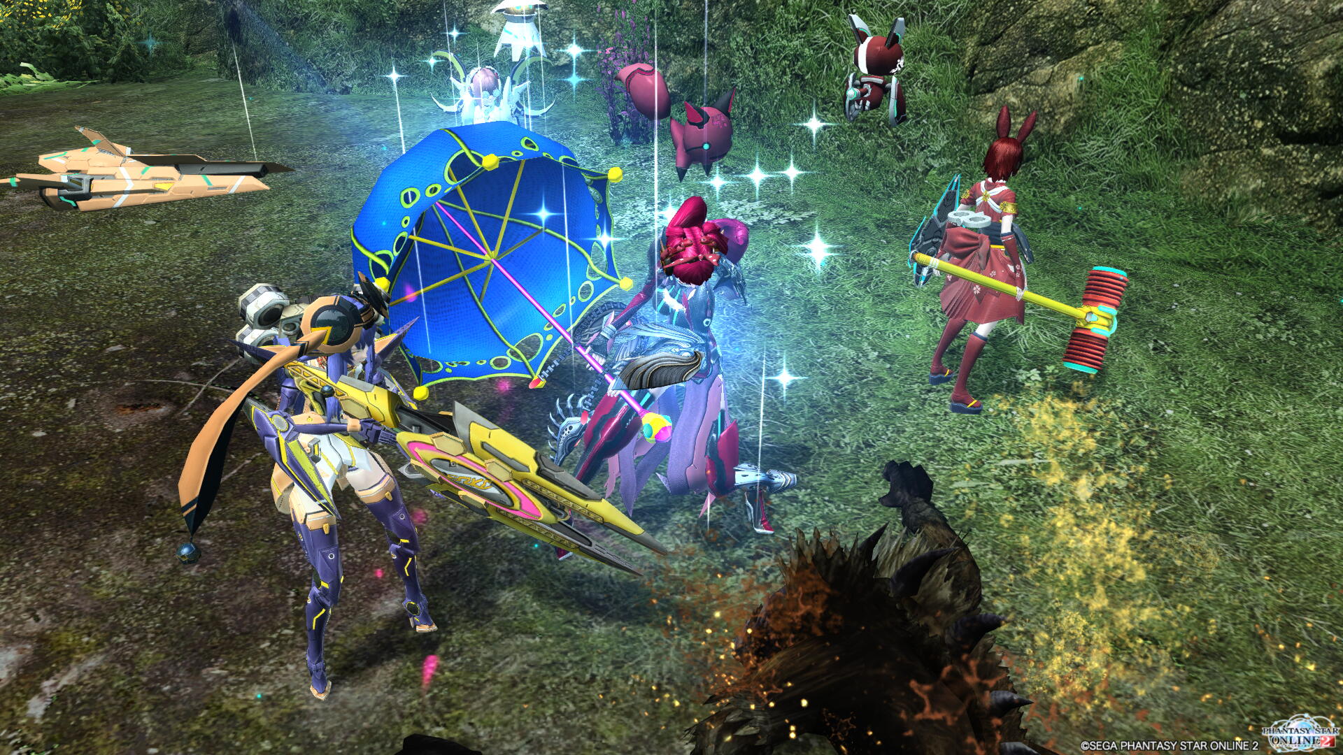 持ってる傘はロッドの武器迷彩です。50万メセタもしました……。確かACスク品。