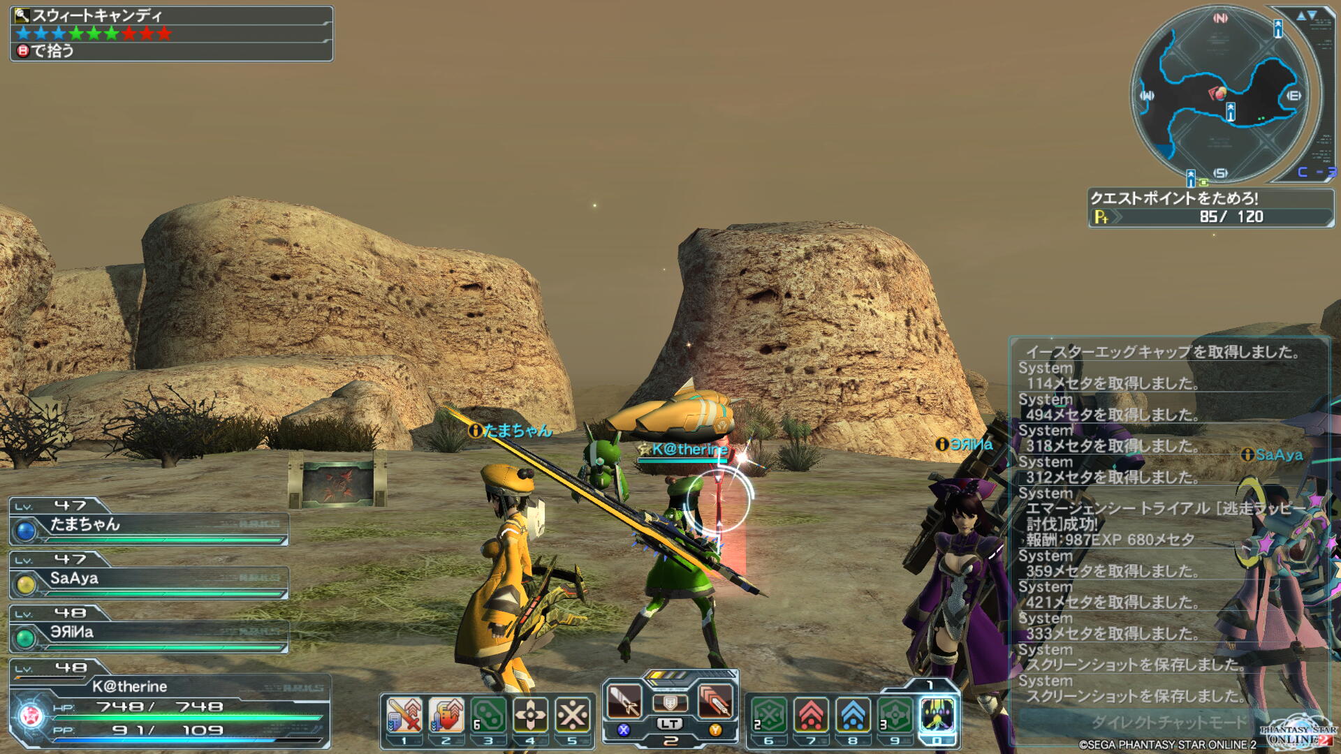 何とか被害を与えずダーカーだけたおしたらキャタもしゃべったw