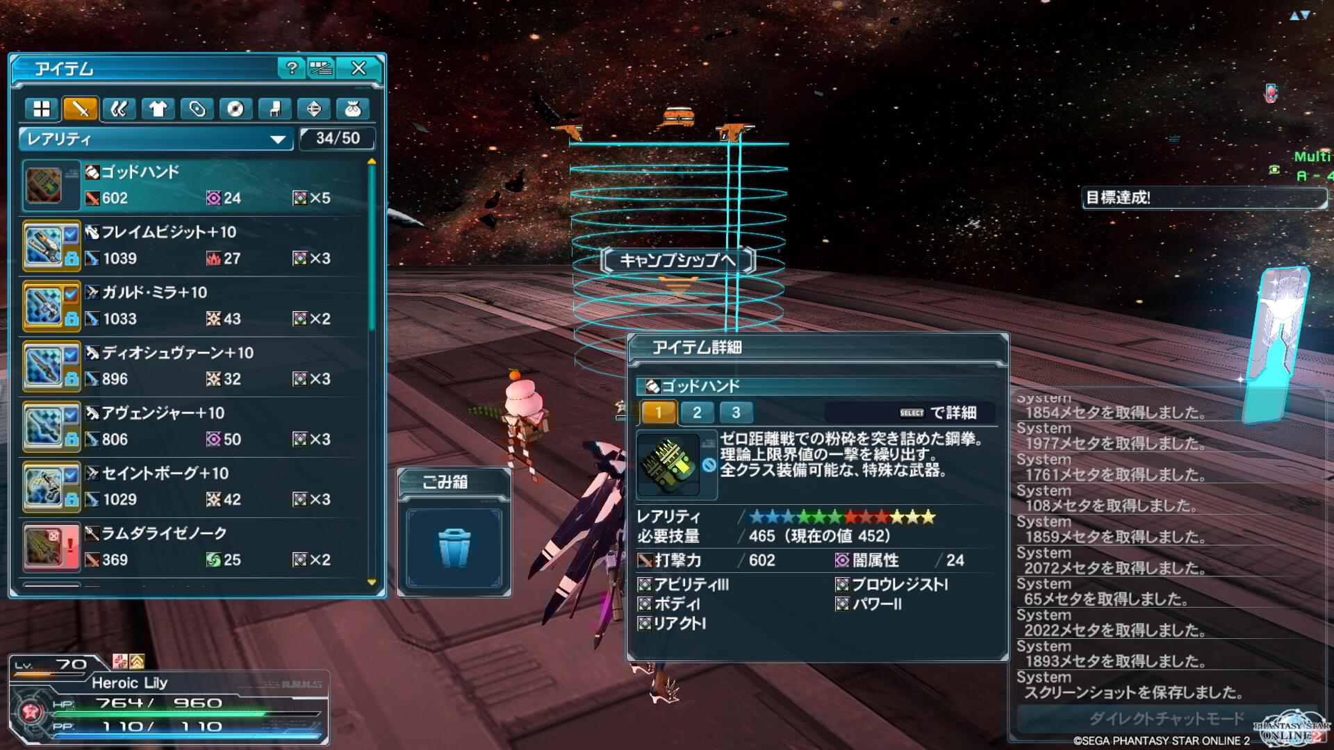 アイテムはPSO2 のメセタみたいに自動取得なのでこのままウロウロしたら拾える。